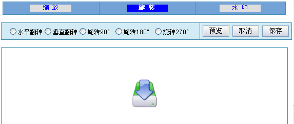 旋转提供5种效果,将当前的图片按指定的效果进行旋转。